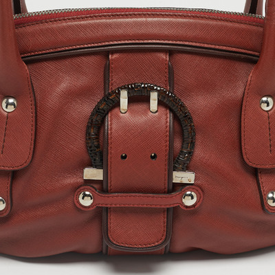 Salvatore Ferragamo Brick Brown Leather Gancini Buckle Satchel 1224637 - 1