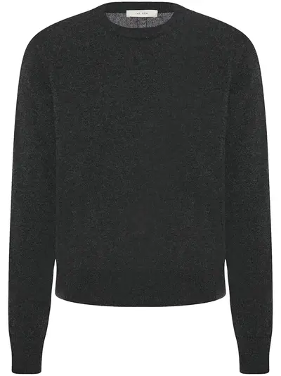 black cashmere ribbed knit crew neck long sleeves ribbed cuffs and hem