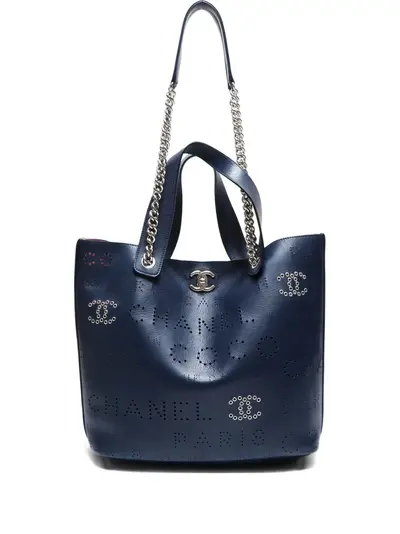 2019 navy blue 27357378 chain detailing logo detailing top handle internal slip pocket press-stud fastening Condition: GOOD. This previously owned and used item is in good condition with minimal signs of use. This may include fading of material or plating and scratches.