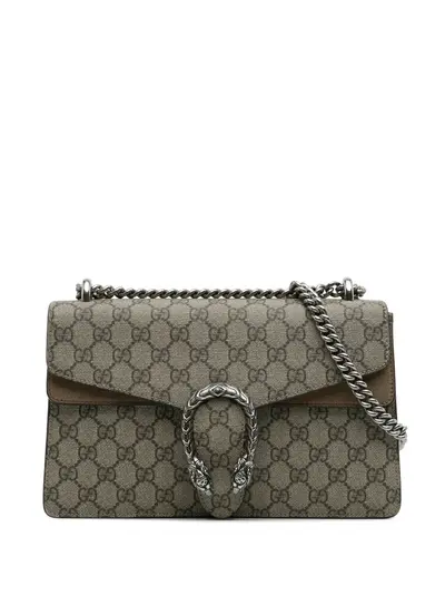 coated canvas body with suede leather trim silver-tone curb chain shoulder strap front flap with push lock closure interior zip compartment brown Serial Number: 400249 486628 Inclusions: dust bag. Condition: EXCELLENT. This previously owned item is in near-perfect condition with no signs of damage or use. Please refer to the photos on this product page for a detailed view of the item, including any damages declared.