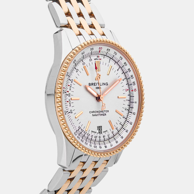 This authentic pre owned Breitling Navitimer U17325211G1U1 is a 38 mm automatic men’s watch that blends iconic aviation inspired design with Swiss precision. Featuring a detailed dial and reliable automatic movement, it exemplifies Breitling’s commitment to craftsmanship and functionality. A sophisticated addition to any watch collection, this Navitimer offers timeless style, performance, and enduring luxury.