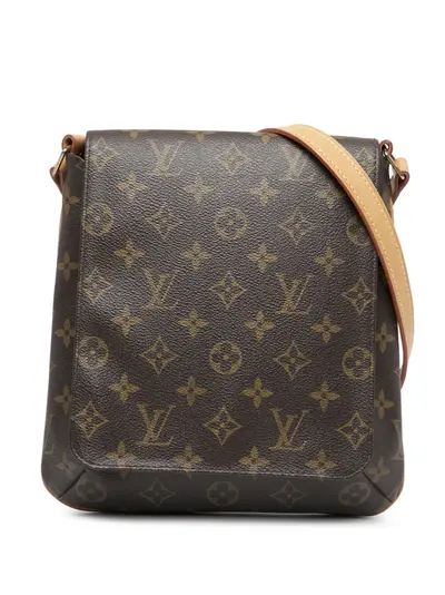 The Musette Salsa features a monogram canvas body with vachetta leather trim, an adjustable flat vachetta leather shoulder strap, a front flap with magnetic snap closure, and an interior slip pocket. Brown. Serial Number: SD0053. This item has no inclusions. Condition: GOOD. This previously owned and used item is in good condition with minimal signs of use. This may include fading of material or plating and scratches. Due to the exclusivity of this item and its limited availability, processing and delivery might take longer than usual. Please refer to the photos on this product page for a detailed view of the item, including any damages declared.