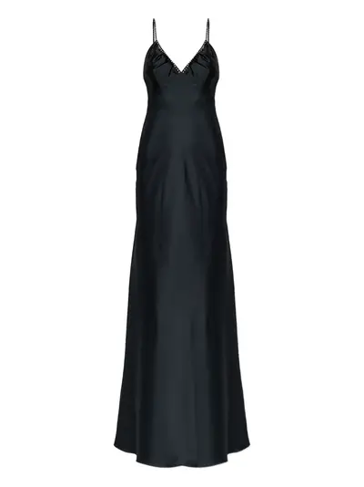 black embellished neckline V-neck and V-back sleeveless floor-length