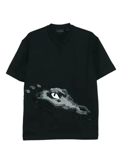 black beaded embellishment crocodile motif round neck short sleeves