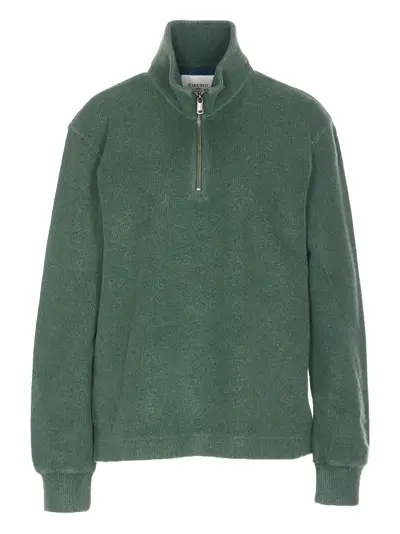 green half zip closure long sleeves ribbed hem ribbed cuffs high neck