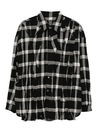 black front button fastening buttoned-cuff sleeves frayed detailing