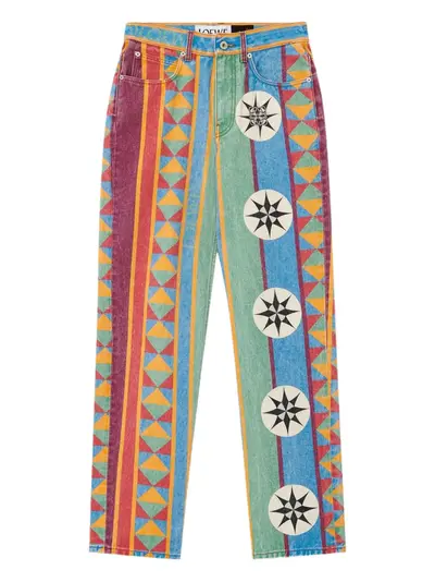 blue/multicolour geometric pattern star motif five pockets belt loops