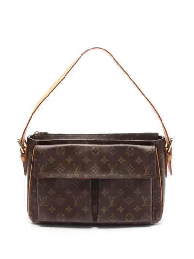 The Viva Cite features a monogram canvas body, an adjustable vachetta leather shoulder strap, a top zip closure, exterior front flap pockets, and interior slip pockets. Brown. Serial Number: AR0065. This item has no inclusions. Condition: EXCELLENT. This previously owned item is in near-perfect condition with no signs of damage or use. Due to the exclusivity of this item and its limited availability, processing and delivery might take longer than usual. Please refer to the photos on this product page for a detailed view of the item, including any damages declared.