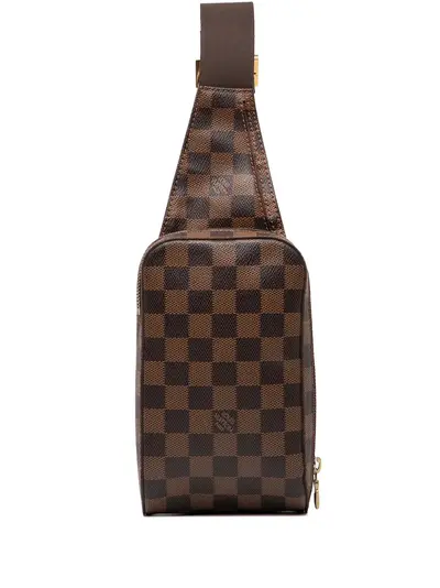 The Geronimos features a damier ebene canvas body, an adjustable flat canvas strap, a top zip closure, and an exterior front slip pocket. Brown. Serial Number: CA3019. This item has no inclusions. Condition: EXCELLENT. This previously owned item is in near-perfect condition with no signs of damage or use. Due to the exclusivity of this item and its limited availability, processing and delivery might take longer than usual. Please refer to the photos on this product page for a detailed view of the item, including any damages declared.