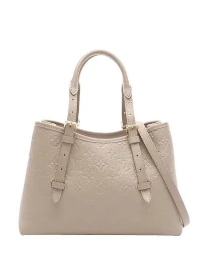 The Babylone Tote PM features a Monogram Empreinte leather body, rolled leather top handles, a detachable flat leather strap, an open top, and interior zip and slip pockets. Brown. Inclusions: shoulder strap. Condition: EXCELLENT. This previously owned item is in near-perfect condition with no signs of damage or use. Due to the exclusivity of this item and its limited availability, processing and delivery might take longer than usual. Please refer to the photos on this product page for a detailed view of the item, including any damages declared.