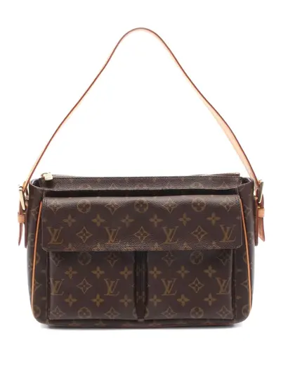 monogram canvas body adjustable vachetta leather shoulder strap top zip closure exterior front flap pockets interior slip pockets brown Serial Number: AR0055 This item has no inclusions. Condition: EXCELLENT. This previously owned item is in near-perfect condition with no signs of damage or use. Due to the exclusivity of this item and its limited availability, processing and delivery might take longer than usual. Please refer to the photos on this product page for a detailed view of the item, including any damages declared.