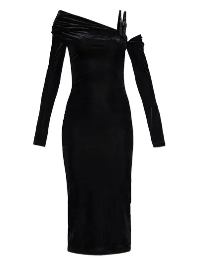 black off-shoulder design long sleeves buckle detail midi length ribbed texture