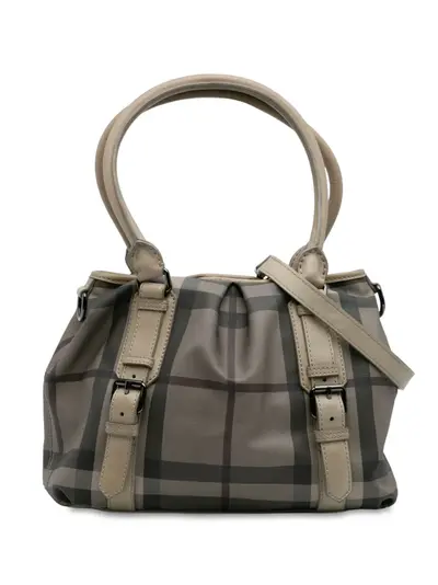 The Northfield features a smoke check coated canvas body with leather trim and buckle details, rolled leather handles, a detachable flat leather strap, an open top with magnetic snap closure, and interior zip pockets. Brown. Serial Number: CNDONHOUDON. Inclusions: shoulder strap. Condition: GOOD. This previously owned and used item is in good condition with minimal signs of use. This may include fading of material or plating and scratches. Please refer to the photos on this product page for a detailed view of the item, including any damages declared.