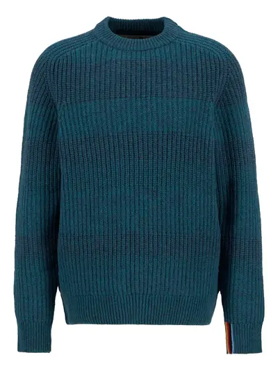 rosette blue ribbed knit stripe detail crew neck long sleeves signature stripe detail
