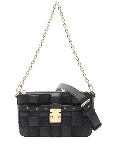The Pochette Troca PM features a quilted leather body, a flat leather strap, a detachable gold-tone chain strap and a top zip closure. Black. Inclusions: shoulder strap. Condition: EXCELLENT. This previously owned item is in near-perfect condition with no signs of damage or use. Due to the exclusivity of this item and its limited availability, processing and delivery might take longer than usual. Please refer to the photos on this product page for a detailed view of the item, including any damages declared.