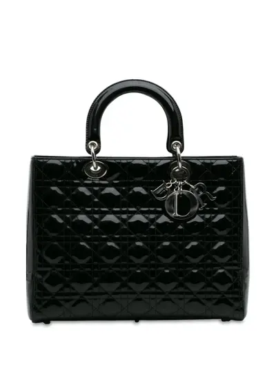 The Lady features a quilted patent leather body, flat leather top handles, a top zip closure, and an interior zip pocket. Black. Serial Number: 05-MA-0141. Inclusions: dust bag. Condition: GOOD. This previously owned and used item is in good condition with minimal signs of use. This may include fading of material or plating and scratches. Please refer to the photos on this product page for a detailed view of the item, including any damages declared.