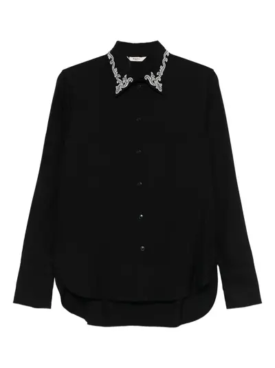 black embellished collar button fastening long sleeves buttoned cuffs curved hem