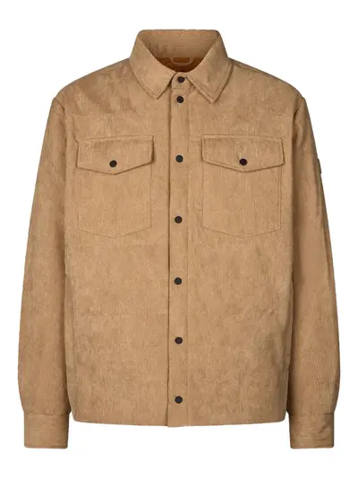biscuit beige corduroy texture button fastening chest pockets long sleeves point collar