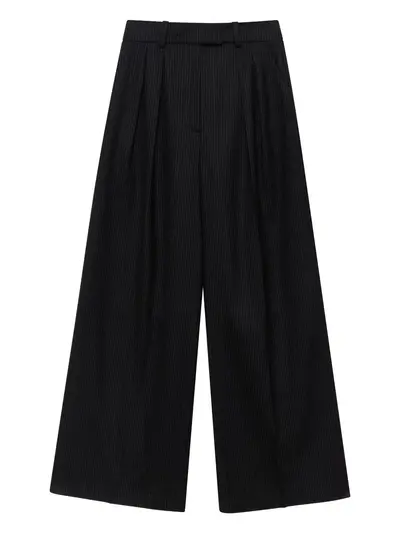 black pinstripe pattern belt loops front concealed fastening wide-leg