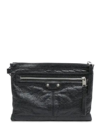 This clutch bag features a leather body, an exterior front zip pocket, a top zip closure, and an interior slip pocket. Black. Serial Number: 273021 1000 C 528147. This item has no inclusions. Condition: EXCELLENT. This previously owned item is in near-perfect condition with no signs of damage or use. Please refer to the photos on this product page for a detailed view of the item, including any damages declared.