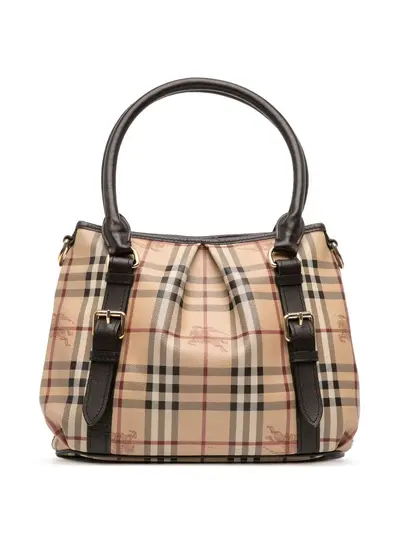 The Northfield features a plaid coated canvas body with leather trim and buckle details, rolled leather handles, an open top with a magnetic snap button closure, and interior zip and slip pockets. Brown. This item has no inclusions. Condition: GOOD. This previously owned and used item is in good condition with minimal signs of use. This may include fading of material or plating and scratches. Declared Damages: Exterior Bottom Feature(s) Minor Loose Stitching. Handle/Strap Feature(s) Minor Splitting. Please refer to the photos on this product page for a detailed view of the item, including any damages declared.