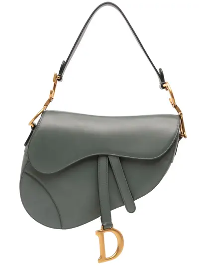 The Saddle bag features a leather body, a flat leather shoulder strap, a front flap with a magnetic closure, an exterior back slip pocket, and an interior zip pocket. Green. Serial Number: 09-MA-0139. This item has no inclusions. Condition: EXCELLENT. This previously owned item is in near-perfect condition with no signs of damage or use. Please refer to the photos on this product page for a detailed view of the item, including any damages declared.