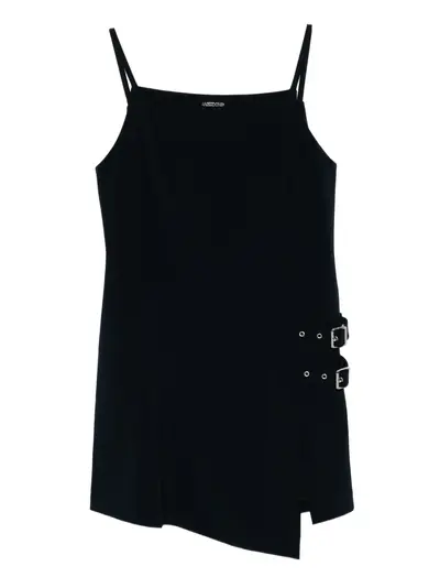 dark blue rear zip fastening spaghetti straps decorative buckle detail