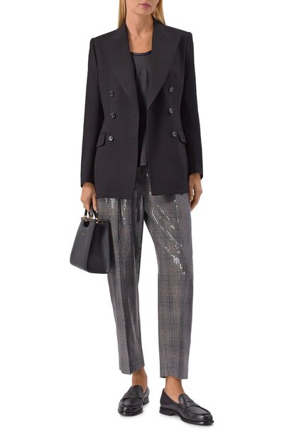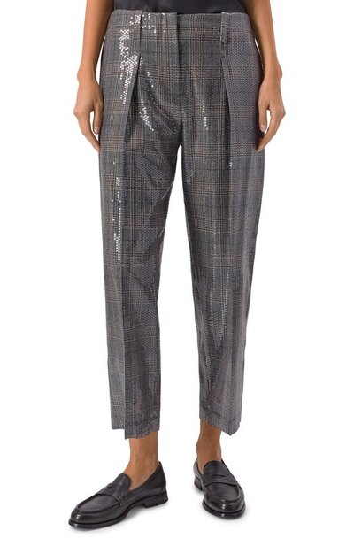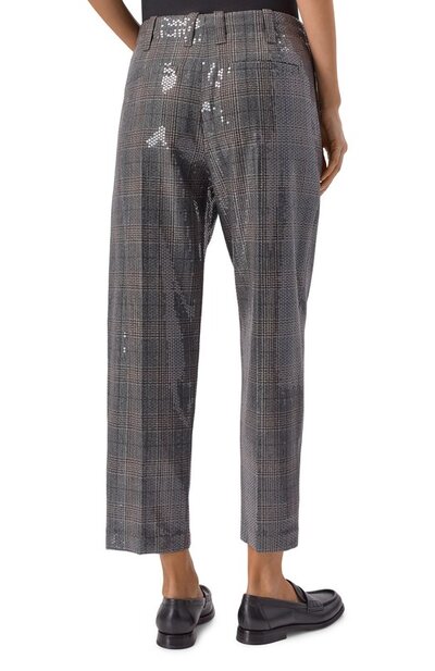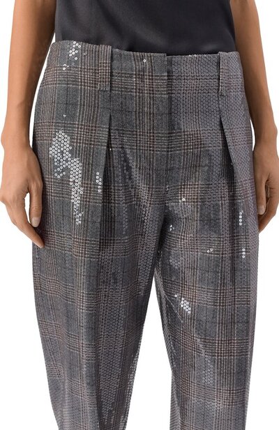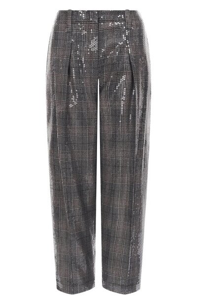 Шерстяные брюки с отделкой пайетками Brunello Cucinelli mb163p9047 (серый, lpn31033682)