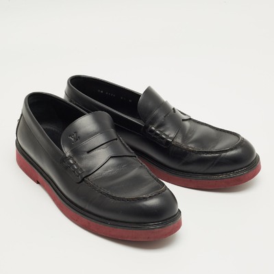 Louis Vuitton Black Leather Slip On Loafers Size 42.5 1228145 (чёрный, lpn31045143)