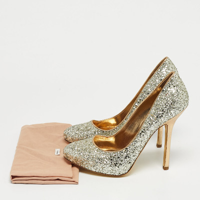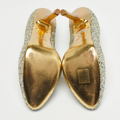 Shine all day and night while wearing these pumps from the House of Miu Miu. Created meticulously from gold coarse glitter, these pumps display slim 8cm heels, pointed toes, and a slip on feature. Elevate the look of any outfit in seconds with these gorgeous pumps.