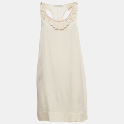 Soft and feminine, this Stella McCartney mini dress is rendered in a pink silk blend with a sleek sleeveless cut. Its minimalist silhouette makes it effortless yet refined. Perfect for both daytime elegance and evening charm.