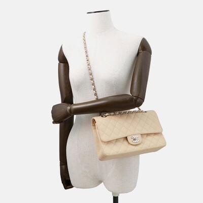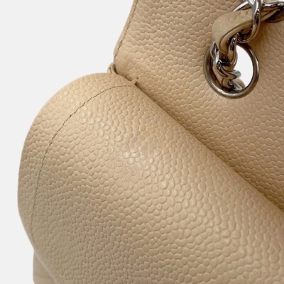 Chanel Matelasse W Flap Chain shoulder Bag Beige Caviar Leather Size 25 1228548 (бежевый, lpn31045185)