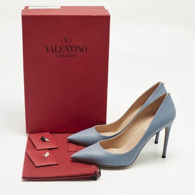 These Valentino Rockstud pumps reimagine a classic with a subtle edge. Crafted in blue leather with a single stud accent on each counter, they bring just enough attitude to balance their timeless silhouette.