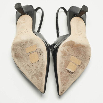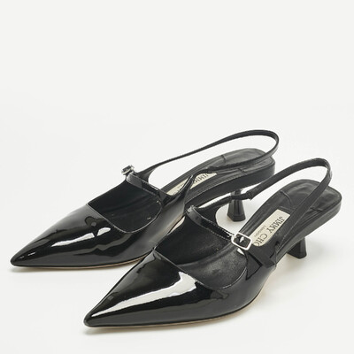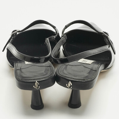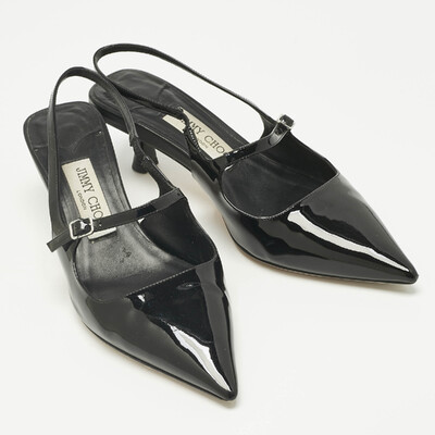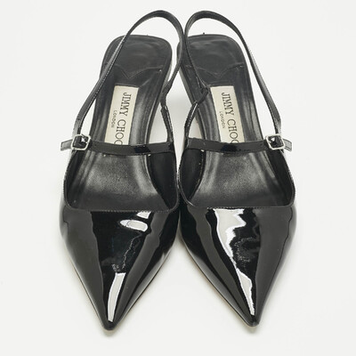 Jimmy Choo’s Didi pumps in black patent leather strike a balance between structure and shine. Their sleek slingback and pointed toe form with a kitten heel make them versatile for sharp suits or silk dresses.