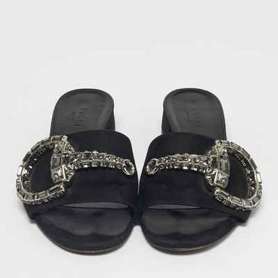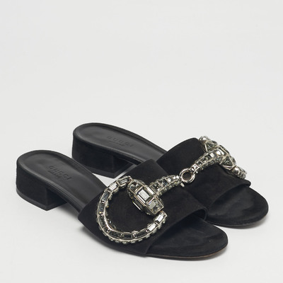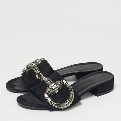 These Gucci Maxime sandals feature soft black suede with the brand’s signature detailing. The flat design ensures all day comfort while maintaining refined style. A versatile choice for everyday luxury.