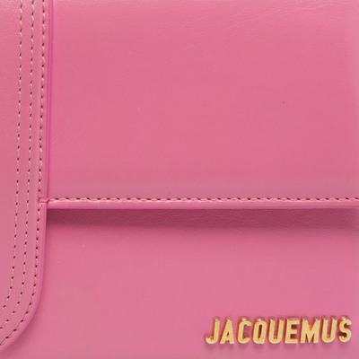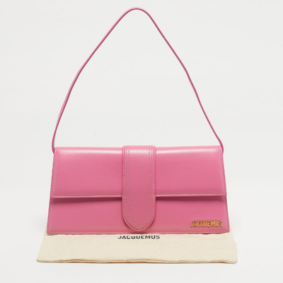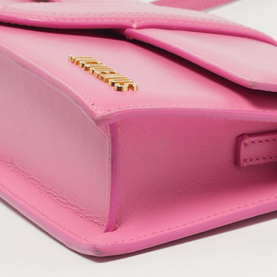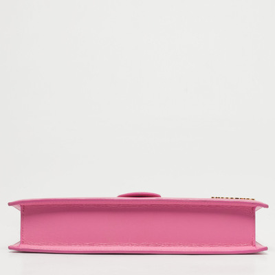 Crafted in smooth pink leather, the Jacquemus Le Bambino Long bag captures the label’s signature balance of minimal design and bold color. The slim rectangular shape and gold tone logo make it a fun, modern piece that stands out with a soft Barbie pink charm.
