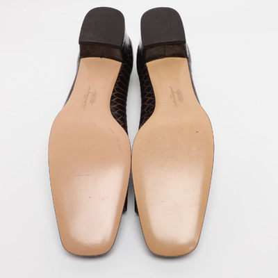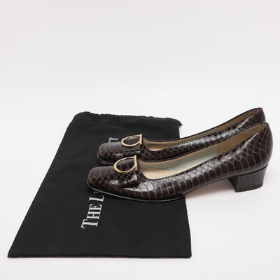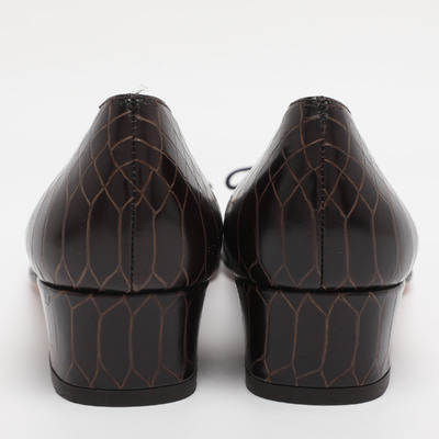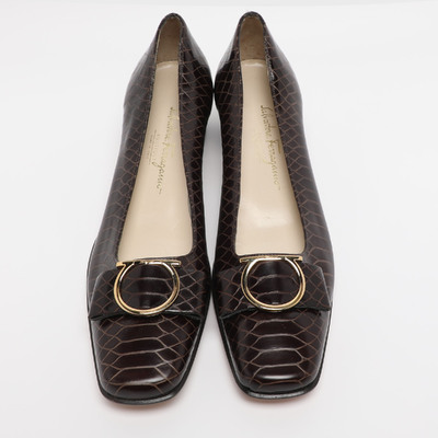 Ferragamo’s pumps in python embossed brown leather nod to classic court shoes. The signature Gancini detail catches the light beautifully, pairing well with both crisp trousers and fluid midi skirts.