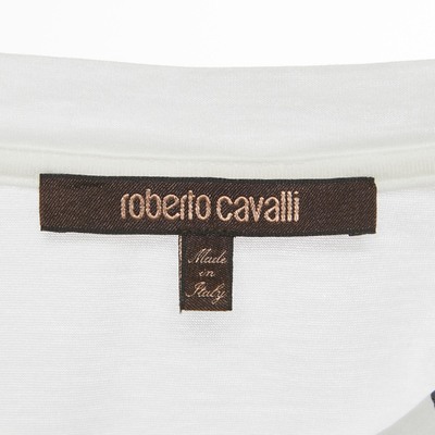 Roberto Cavalli’s white jersey T shirt brings bold energy to casualwear. Defined by a snakeskin print, it reflects the brand’s fascination with exotic textures and confident design. Crafted in soft cotton jersey, it pairs easily with jeans or leather for effortless Italian allure.