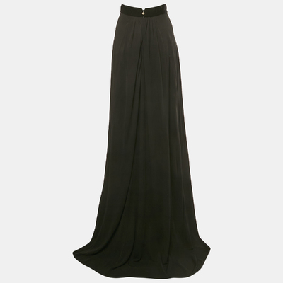 Just Cavalli Black Crepe Plisse Panel Maxi Skirt L 1224877 - 1