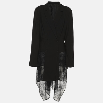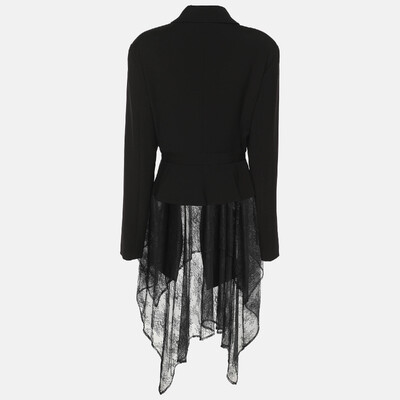 BCBGMaxAzria Black Crepe and Lace Hem Double Breasted Blazer L 1226023 (чёрный, lpn31045251)