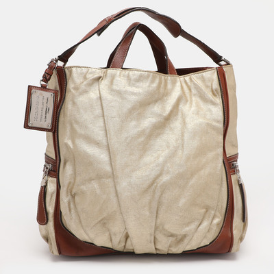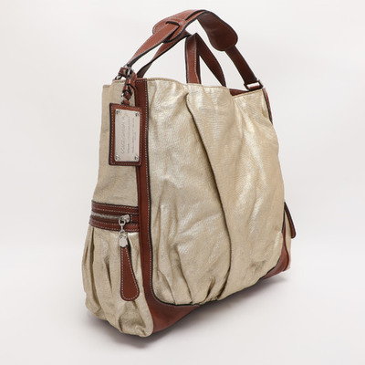 The Miss Exotic Tote has that easy kind of shine that works anywhere. The mix of golden canvas and brown leather feels relaxed but still sharp. It’s roomy, soft to hold, and perfect for travel.