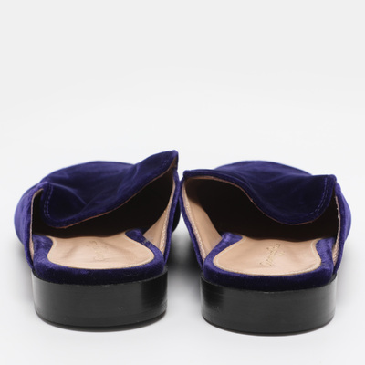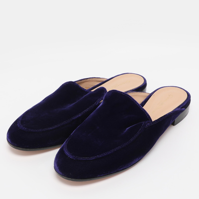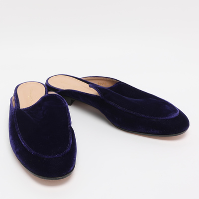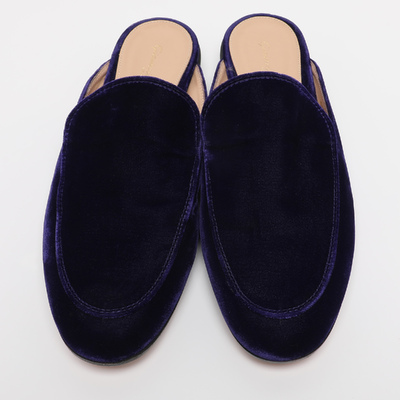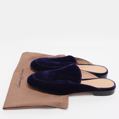Luxurious indigo velvet defines these Gianvito Rossi Palau mules, blending comfort with refined style. The flat silhouette makes them perfect for both relaxed and dressy occasions.