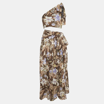 Zimmermann’s signature romanticism is on full display in this cotton crop top and skirt set, adorned with earthy florals. The Coco Bow detail adds a whimsical finish, while the airy fabric ensures easy elegance. Ideal for sun drenched afternoons or elevated vacation dressing, the set embodies the Australian house’s refined approach to effortless femininity.