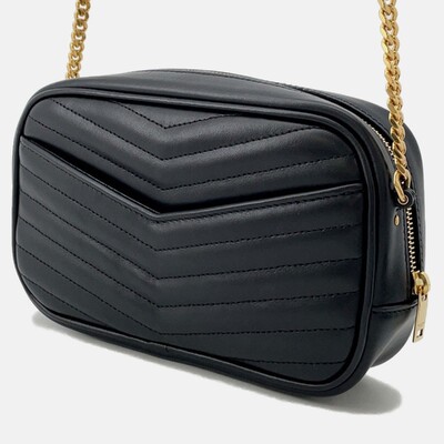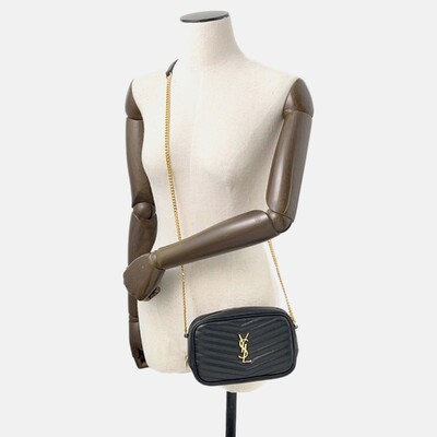 A compact everyday option, this Saint Laurent Lou mini bag in black calf leather features a zip closure and signature YSL logo. Designed with a crossbody strap for hands free wear, its ideal for carrying essentials.