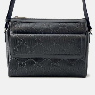 Streamlined and statement making, this embossed messenger bag channels utilitarian elegance with unmistakable edge. The all over GG motif adds quiet authority to the matte black leather body—subtle, sleek, and purpose built for those who travel light but think big.