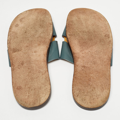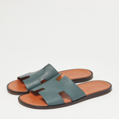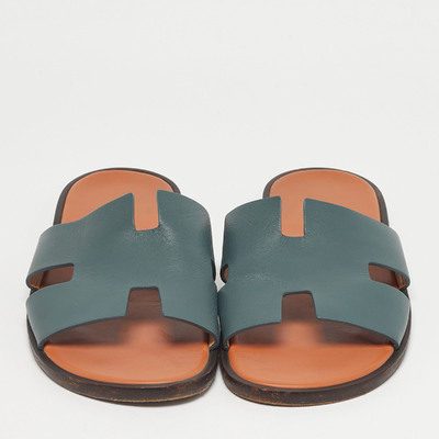 Hermes Blue Leather Izmir Flat Slide Sandals Size 43.5 1228229 (голубой, lpn31045307)