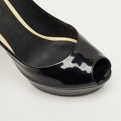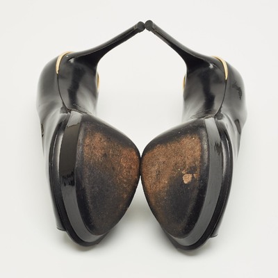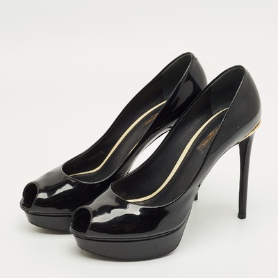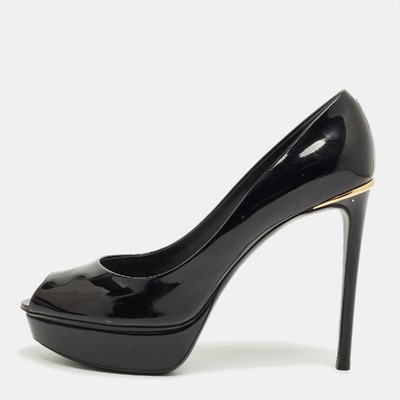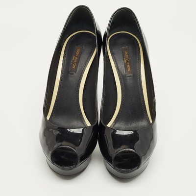 Louis Vuitton Black Patent Leather Eyeline Peep Toe Pumps Size 37.5 1228200 (чёрный, lpn31045310)