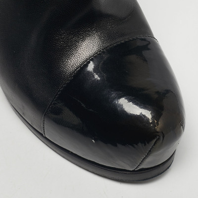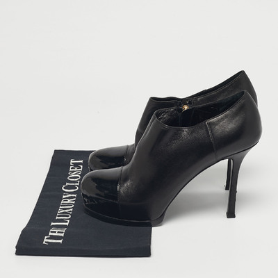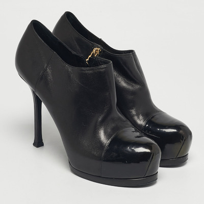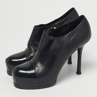 Yves Saint Laurent Black Patent Leather Tribute Booties Size 37.5 1228162 (чёрный, lpn31045313)
