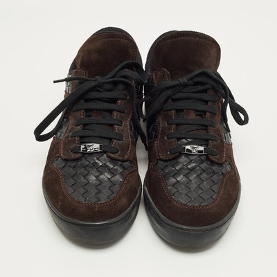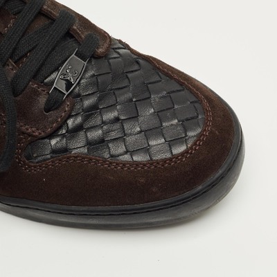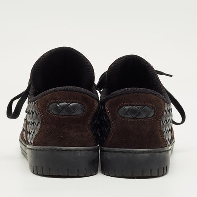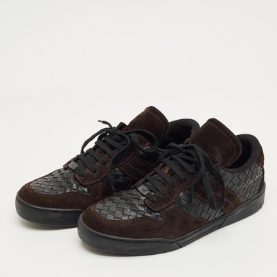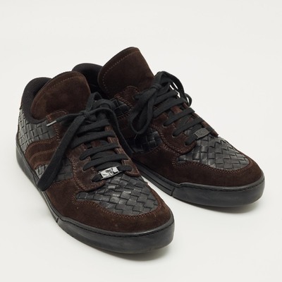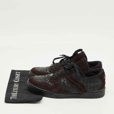 Bottega Veneta Black/Dark Brown Suede and Woven Leather Intrecciato Lace Up Sneakers Size 43 1228017 (чёрный, lpn31045316)