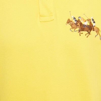 This Polo Ralph Lauren T shirt is crafted from soft yellow cotton in the brand’s Custom Slim Fit. The classic collar and two button placket nod to its sporting roots, while the embroidered three pony logo adds a luxe finishing touch.